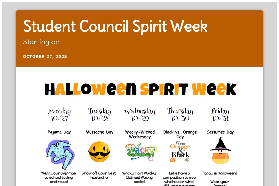 Student Council Spirit Week Starting on October 27, 2025